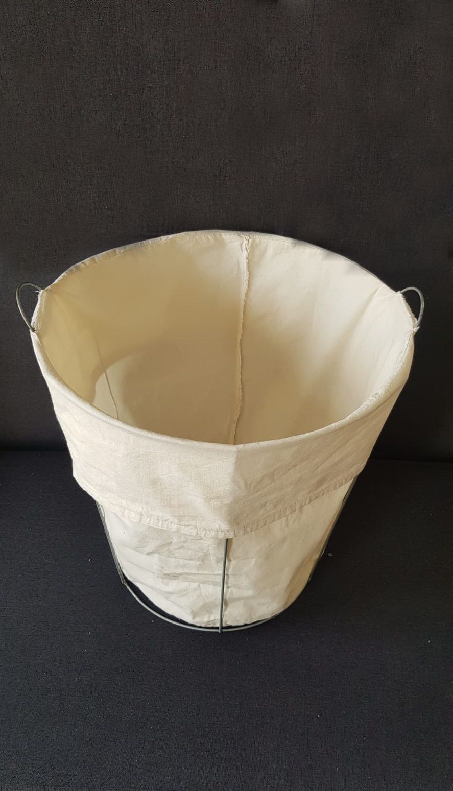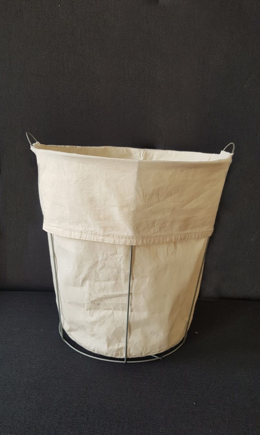 Medidas Ø40 x 40 de alto. Realizado en alambre de 3,66mm. Posee funda removible de lienzo de algodón color natural.